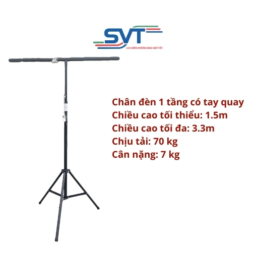 Chân đèn 1 tầng có tay quay là phụ kiện không thể thiếu trong các hệ thống sân khấu, sự kiện, hội trường, tiệc cưới và phòng trà. Sản phẩm được thiết kế chắc chắn, chịu tải lớn, hỗ trợ treo đa dạng các loại đèn sân khấu như par led, par64, đèn cob, blinder, moving head mini…