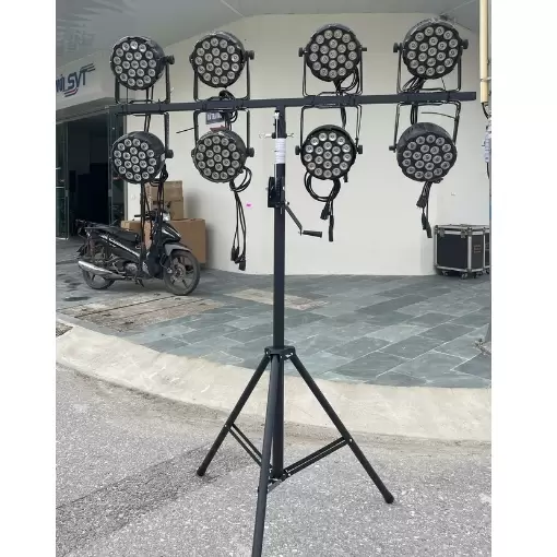 - Thanh ngang có sẵn 6 ốc bắt đèn, lắp đặt nhanh, phù hợp nhiều loại đèn sân khấu.