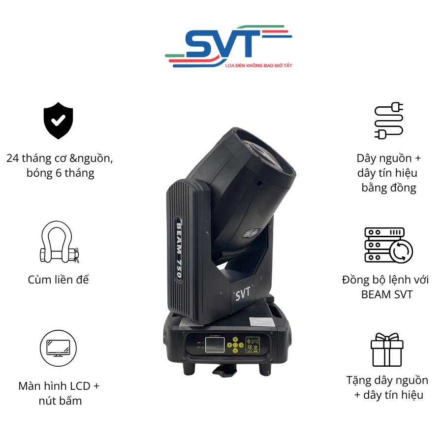 Với hệ thống màu sắc đa dạng, hiệu ứng gobo cùng khả năng xoay linh hoạt, Beam 750 đáp ứng tốt nhu cầu sử dụng ổn định, dễ điều khiển và phù hợp với nhiều quy mô sân khấu khác nhau, hỗ trợ kỹ thuật ánh sáng xây dựng hiệu ứng đồng bộ và chuyên nghiệp trong quá trình vận hành thực tế.