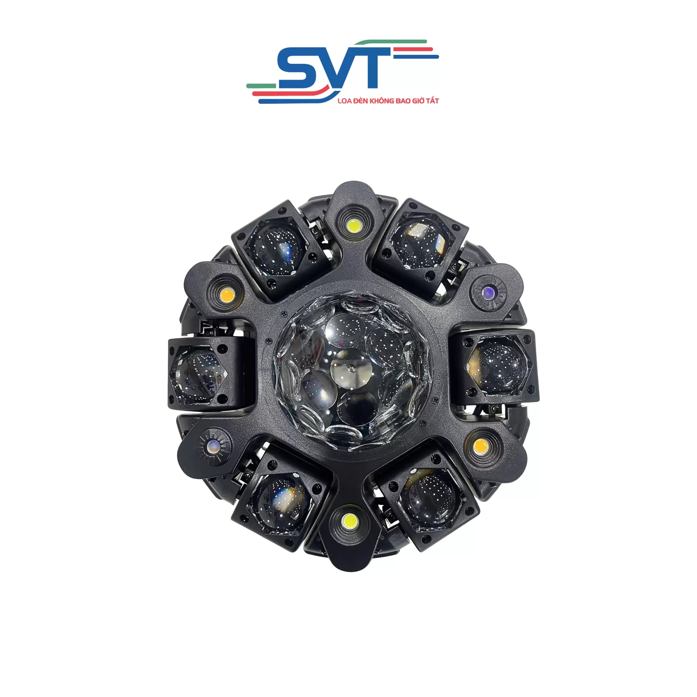 Quả Cầu Ma Thuật là giải pháp ánh sáng đa hiệu ứng dành cho karaoke và sân khấu vừa & nhỏ. Khi bật lên, hệ thống LED RGBW kết hợp laser đỏ – xanh lá tạo hiệu ứng xoay quét 360°, phủ sáng toàn không gian. Cầu trung tâm và các cánh tay xoay độc lập giúp ánh sáng chuyển động liên tục, không bị đơn điệu.