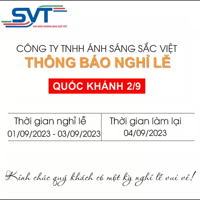 Thông báo lịch nghỉ lễ quốc khánh 2-9 CHÀO MỪNG LỄ QUỐC KHÁNH 2/9 Công ty TNHH Ánh Sáng
